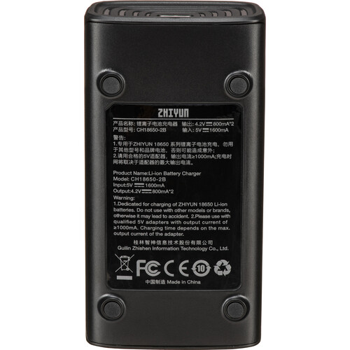 The Zhiyun-Tech 18650 2-Slot Battery Charger features a USB Type-C charging port and can be connected to standard USB chargers using a compatible USB cable, sold separately. The compact charger accepts two Zhiyun-Tech 18650 gimbal batteries. Please note that some Zhiyun-Tech gimbals, like the WEEBILL LAB, don’t support many third-party 18650 batteries because of slight size differences, so this charger may also not support third-party batteries and is recommended for Zhiyun 18650 batteries only.