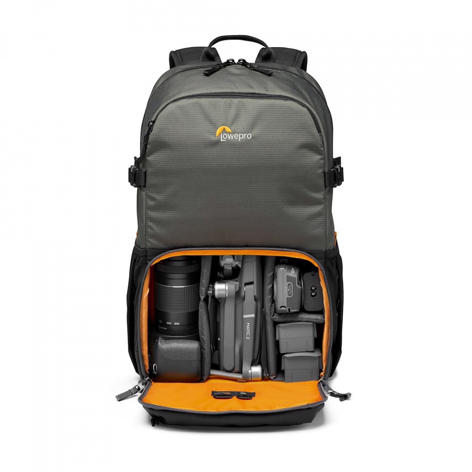 Lowepro’s Truckee BP 250 is a great basic camera daypack that delivers all-day comfort, durable materials, simple organization pockets, space for a tablet and room for your personal gear. Truckee backpacks blend fun, function, and grab-and-go spontaneity perfect for music festivals, light hikes or nights under the stars. The 50/50 split storage provides open space up top for an extra jacket or a snack, combined with an easy access camera compartment on the bottom. Camera space is perfect for a compact DSLR or mirrorless camera with 1 or 2 extra lenses. Also fits a compact folding video drone or video kit with camera, mic and light. Dual side compression straps and mesh pockets secure a compact tripod and water bottle. Integrated trolley pass-through lets you securely carry the bag on rolling luggage. Tricot lined external stash pocket for quick access to small items like phone, sunglasses, etc.