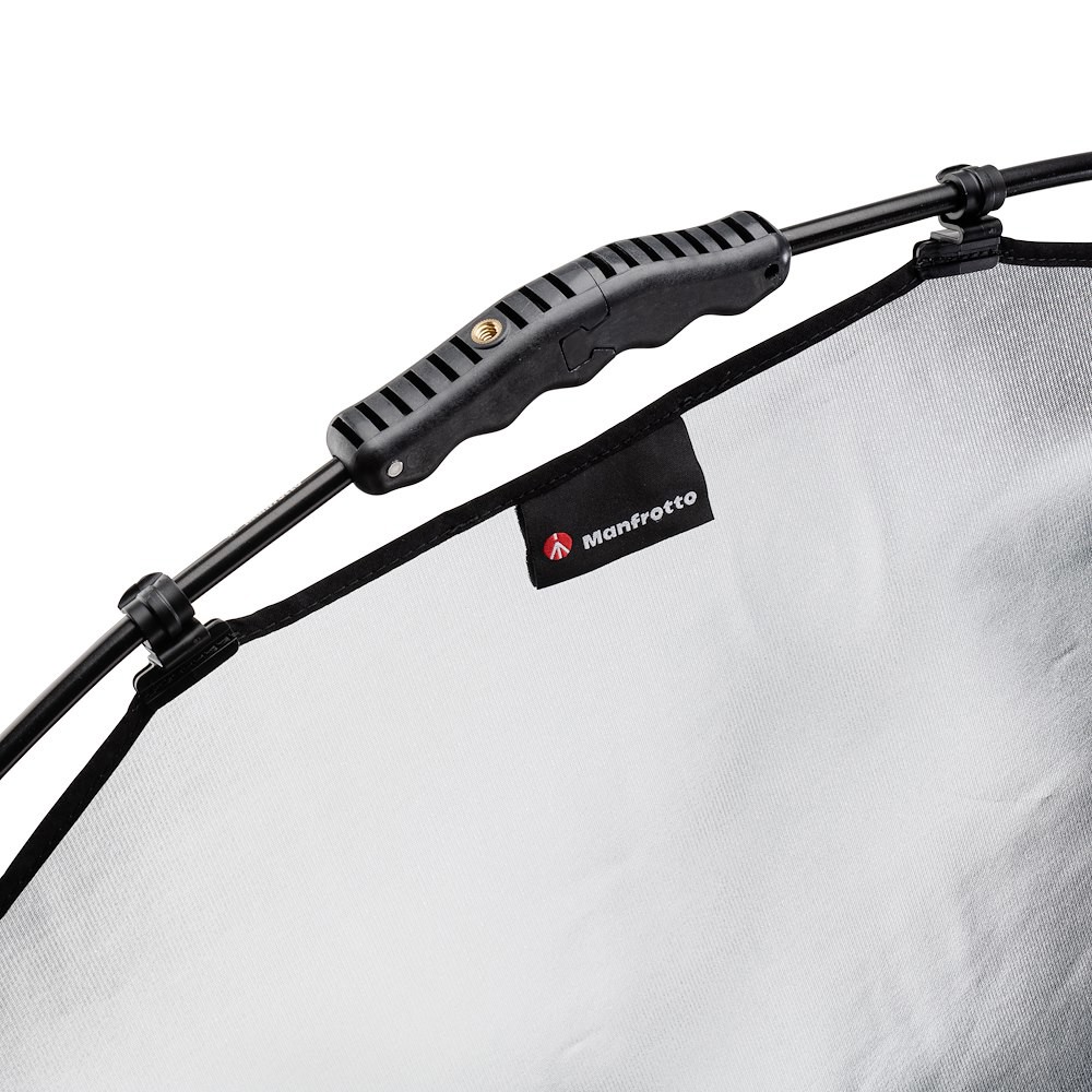 The HaloCompact is a patent pending design concept that makes the everyday reflector panel even more portable than ever. Unlike many traditional reflector panels that incorporate a steel rim pop up design, the rigid frame of the HaloCompact Plus is constructed using Manfrotto’s innovative RapidExoframe technology. The collapsible lightweight aluminium frame quickly slots together and the reflector fabric cover simply clips onto the frame using a newly designed ergonomic clip, offering more flex during assembly to make set up even easier. The cleverly designed RapidExoFrame construction allows the frame to breakdown into small multiple sections and along with the folded cover, packs into a carry case measuring only 29.5cm x 10.5cm x 6cm weighing only 450g.