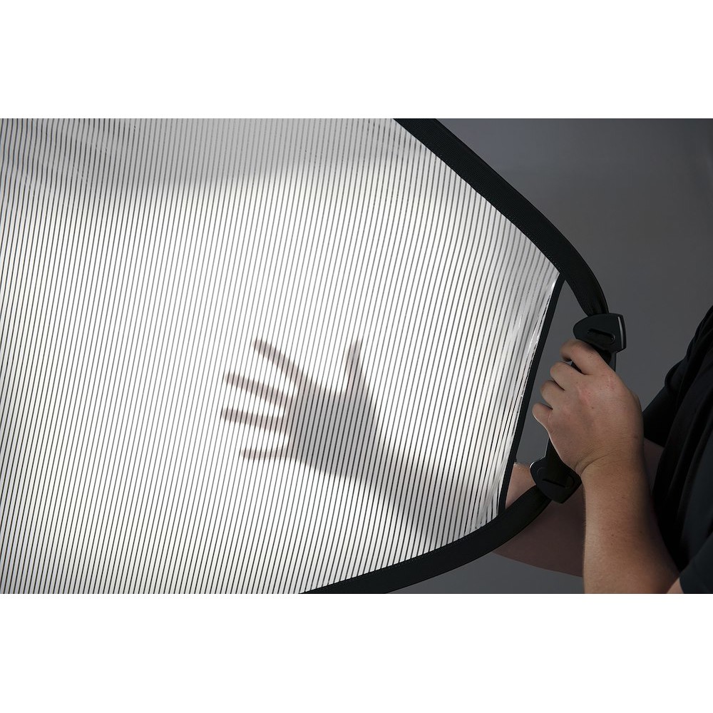 The Manfrotto TriGrip Deflector light reflector is the world’s first dual purpose reflector panel which can be used as a diffuser (2.3 stops) and a bounce reflector. The unique fabric developed for this product allows light to pass through one side of the bounce and bounce off the other side, making it truly versatile whatever the lighting conditions. The light deflector is available in two versions, one with a soft silver reflective surface and the other with a soft gold surface.