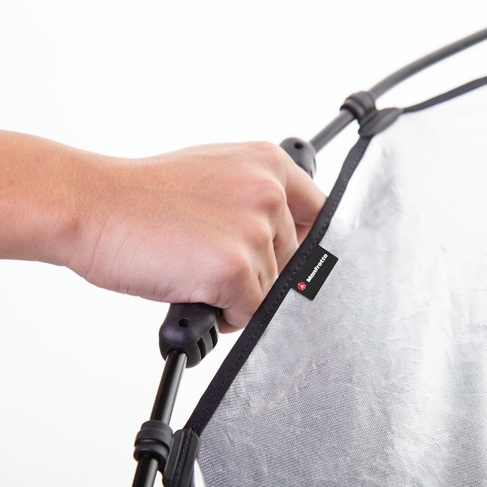 The collapsible lightweight aluminium frame quickly slots together and the Silver/White reversible light reflector fabric simply clips onto the frame. The cleverly designed RapidExoframe™ construction breaks down into small multiple sections and packs into a carry case measuring only 6.5 x 27 x 6.5cm (2.5” x 10.5” x 2.5”) weighing only 335g (reflector and case).