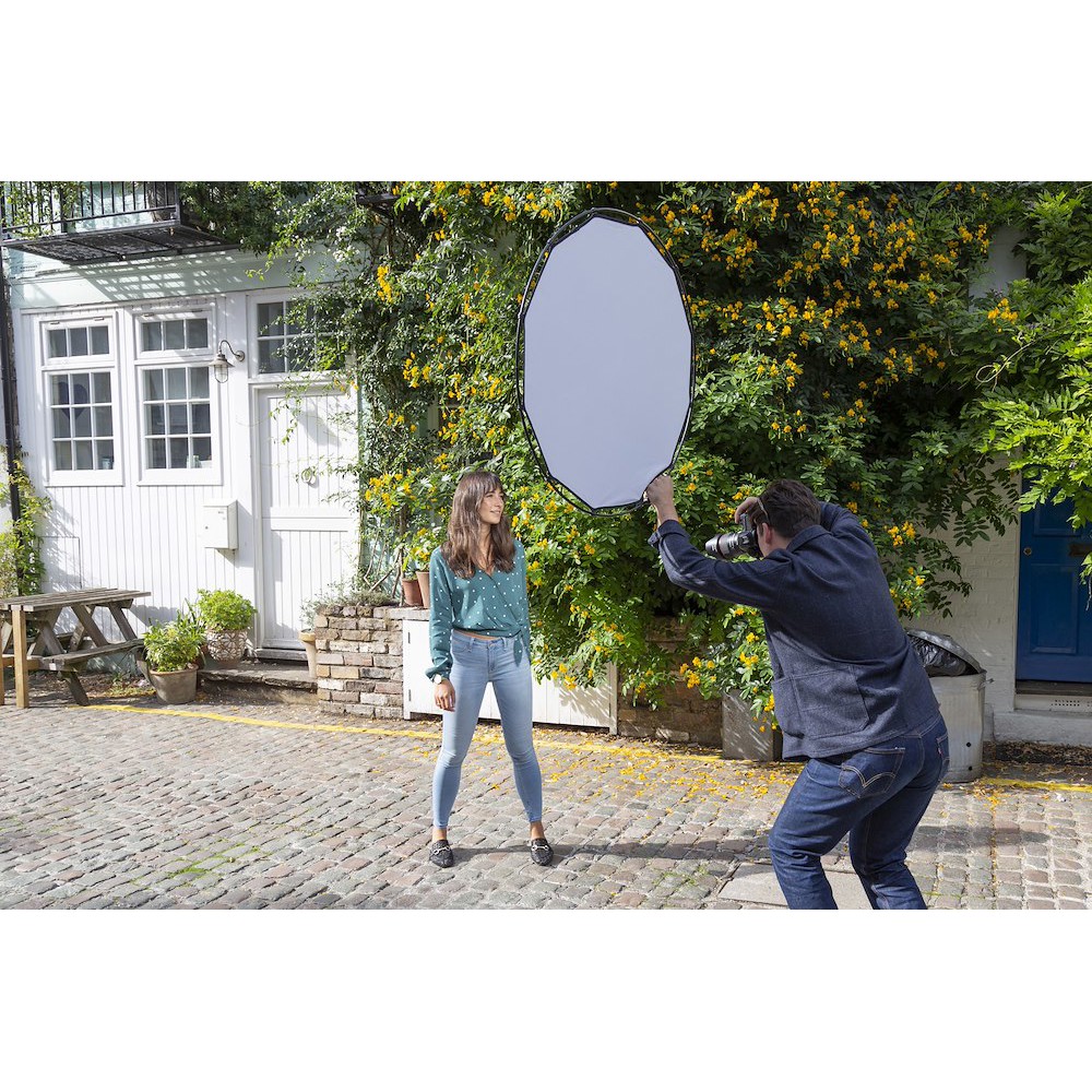 The HaloCompact Reflector 82cm Silver/White is a patent pending design concept that makes the everyday reflector panel even more portable than ever!