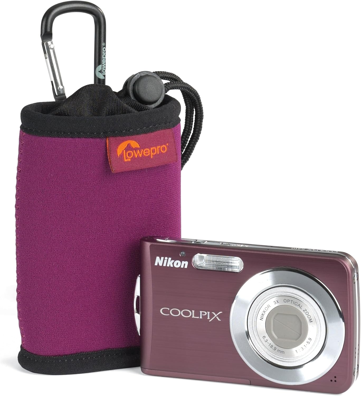 It takes design inspiration from a rock climber’s chalk bag. It gets its protective, convenient features from being a Lowepro pouch. The Hipshot 10 is built to be ultra-convenient to toss in a bag, tote, briefcase or suitcase. Made of stretchy neoprene to fit and protect today’s bestselling compact cameras, MP3 players, ultra-compact point-and-shoot video cameras and smartphones. Access and secure quickly with a handy drawstring and toggle closure. Clip on to a loop or strap with the built-in carabiner. Buy in multiples to carry and protect a whole collection of digital gear.