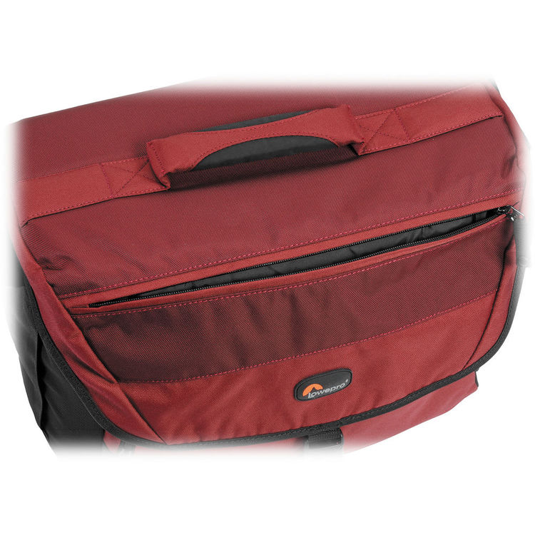 There is an exterior front zippered pocket that provides easy access to cables, adapters, and other digital accessories. Plus dual memory card pockets on the interior of the lid can keep your media in the same place every time. There are additional interior and exterior pockets for accessories. The bag can be carried by a cushioned grab handle or removable, adjustable collar-cut shoulder strap with non-slip pad.