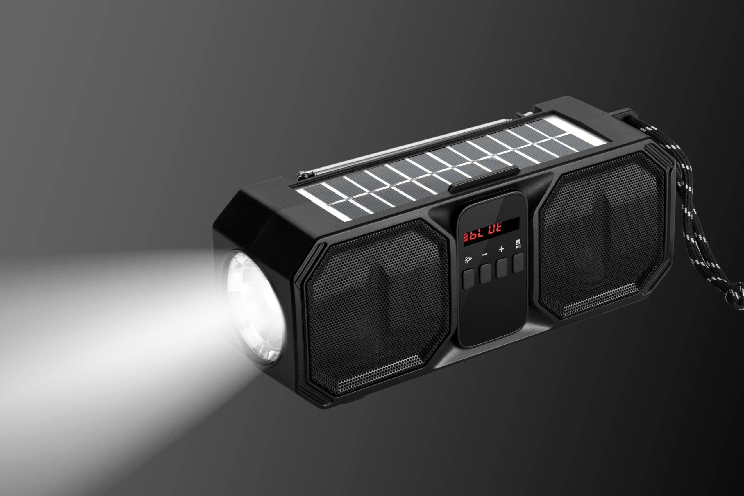 Stay informed and entertained with the built-in FM radio. Plus, the integrated flashlight ensures you’re never in the dark. It’s a speaker and emergency light rolled into one.Powerful Sound, Anywhere
