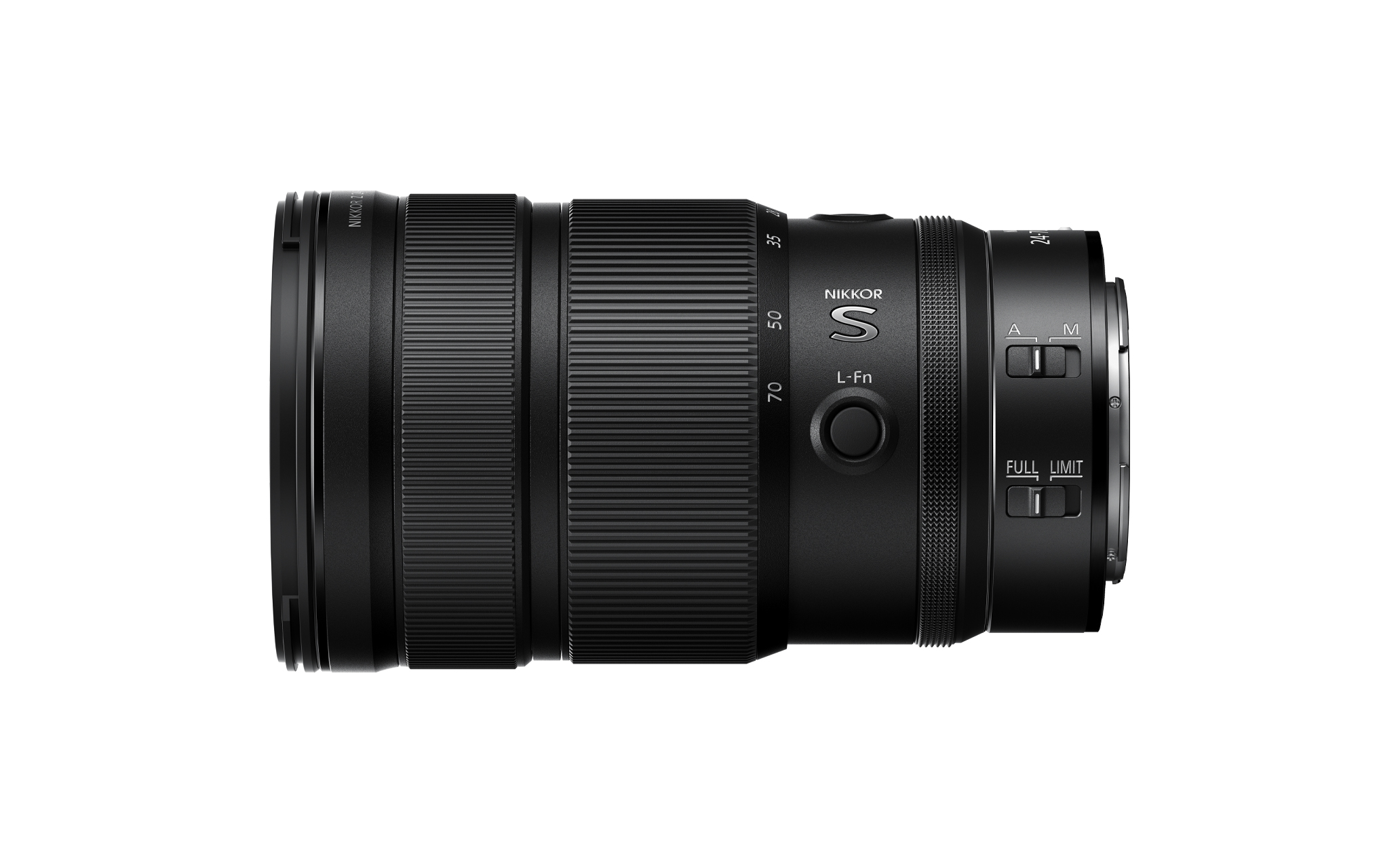- Minimum focusing distance has also been significantly shortened compared to the previous generation—9.4″ at the 24mm position and 1.1′ at the 70mm position, with a 0.32x maximum magnification at the minimum focusing distance from the 70mm position.