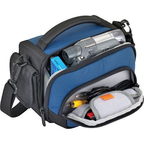 The Lowepro Clips 110 Camcorder Shoulder Bag (Arctic Blue) is designed for a DVD-R or mini DV camcorder and accessories. It is made from tough, water-resistant ripstop fabric, with soft brushed tricot lining the main compartment to protect the camcorder against dust and scratches.