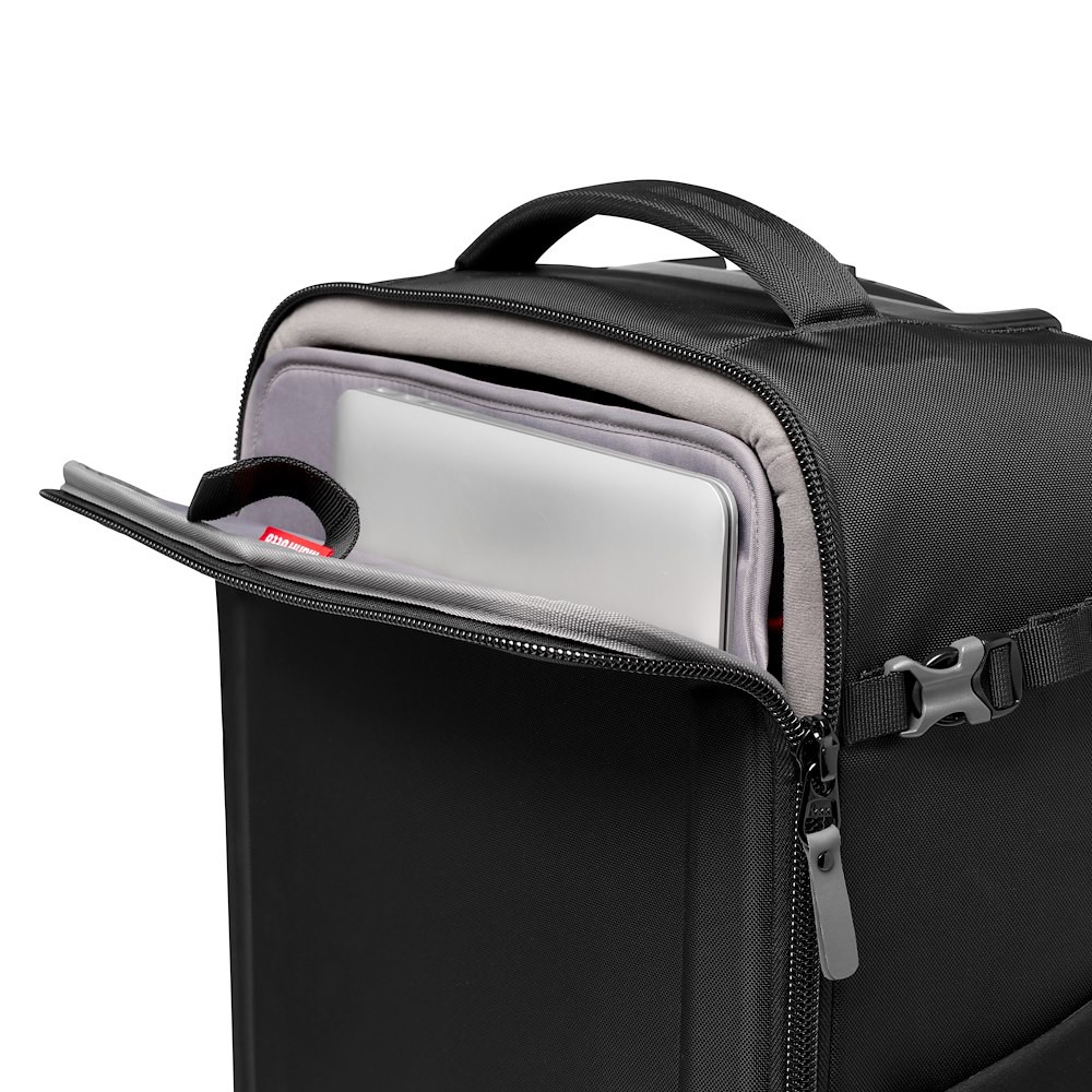 Use the Manfrotto Advanced III 25.5L Rolling Camera Bag to securely carry all your photo gear wherever you need to go. This bag can hold multiple camera bodies, half a dozen lenses, plus accessories including a travel tripod and a laptop. The M-Guard divider system allows you to customize the camera compartment organization.