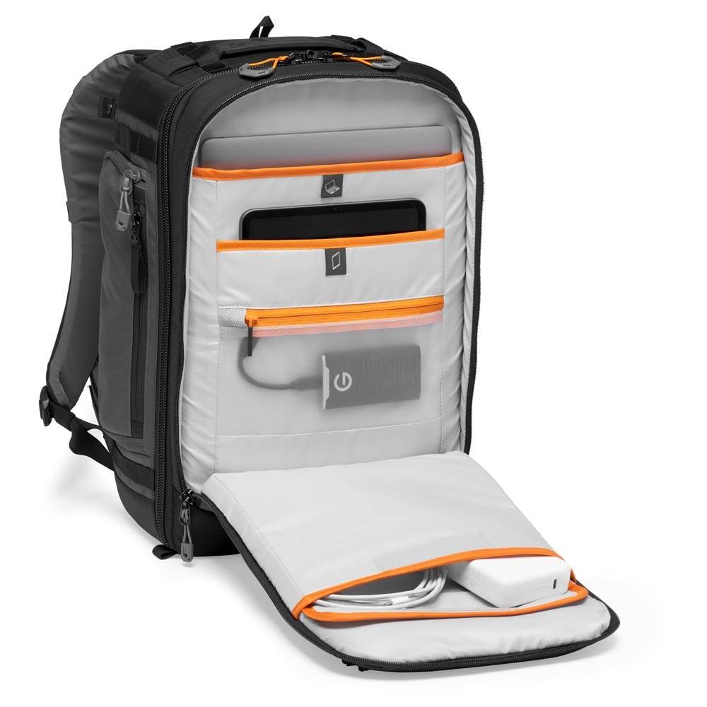 The exterior dimensions are designed to provide carry-on compatibility with most regional airline carry-on and also fits shorter torsos. The Lowepro Pro Trekker BP 350 AW II bag not only holds a camera (including a DSLR or full-frame pro mirrorless camera), but additional lenses, laptop, exterior tripod, tablet and your essential photography accessories.