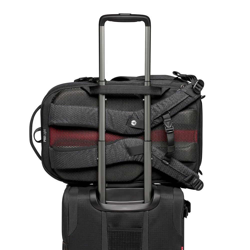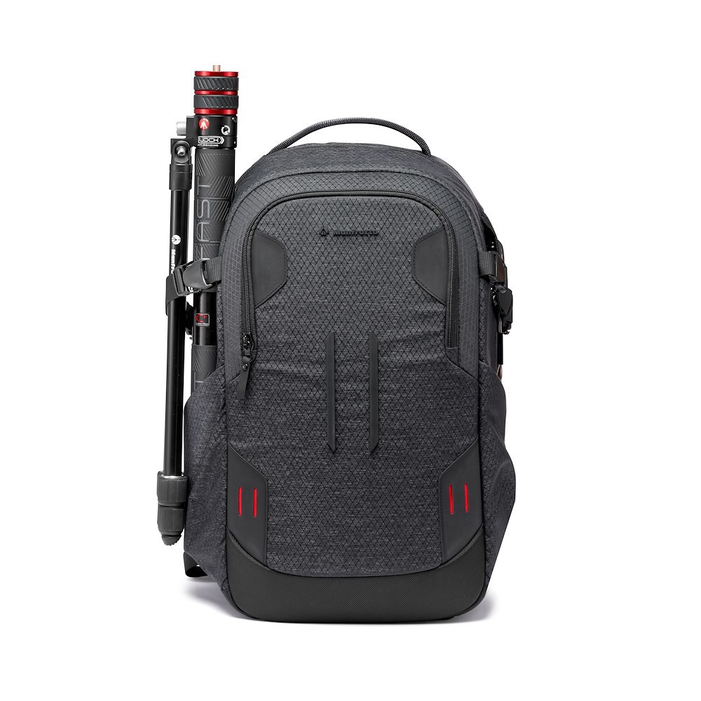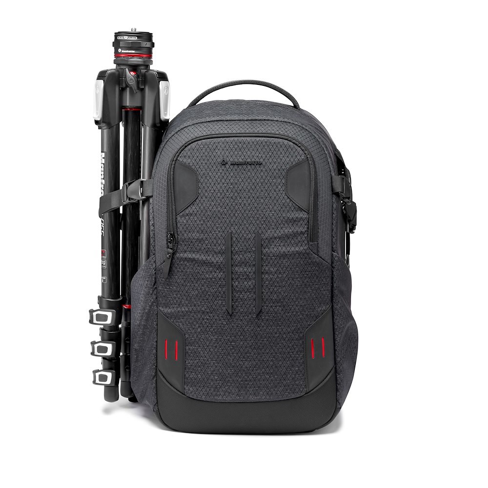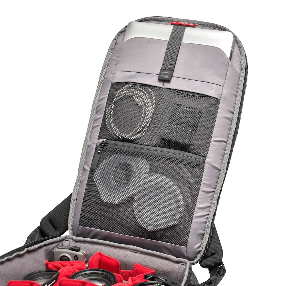 The Manfrotto PRO Light Backloader Camera Backpack M is a professional camera bag specifically designed to provide unparalleled gear protection to fit the preference and workflow of any professional photographer or filmmaker. The PRO Light backpacks usher in the all-new M-Guard™ Protection System specifically designed and laboratory tested to guarantee the highest level of protection and shock resistance especially on areas of the bag where protection is most crucial. M-Guard™ dividers are made of high-density EVA foam that provide exceptional shock absorption while maintaining a super slim profile. In addition the SAS-TEC, a viscoelastic memory foam and multi-impact endurance, adds a structural reinforcemnt on the base of the backpack providing extra shock absorbing properties. For an even better worry-free experience, a TSA approved padlock can be used to secure the steel wire puller to close the main compartment. The PRO Light Backloader comes with a safe rear access into a fully padded camera gear compartment with customizable interiors. For full shooting experience, the Backloader M holds 2-3 full frame DSLR or mirrorless cameras with portrait grip on the main compartment plus multiple lenses. Alternatevely the internal organization arrangement can be customized to meet different storage needs thanks to a moveable interior panel that can split the internal space in 2 additional different ways: the top compartment can be dedicated to the 20% to personal items and easily accessed by the quick top opening and the other 80% to gear or interchangeably carry 80% personal items and 20% camera gear. The top access point serves as an alternative for reaching into the most used cameras or lenses. In front is a multi-section compartment both internal end extrenal for small accessories and personal items along with a laptop section that holds a 15” laptop. The Backloader features a double-sided tripod connection for travel sized tripods, an adjustable chest strap for better carrying, and a DuoFace sun and rain cover that repels moisture and reflects sunlight to keep the gear cool and dry all day long. The backpack is made of water-repellant RipStop nylon/polyester fabric with reinforcement yarns to achieve a balance of light weight, unique look, and high capacity performance. Duraflex® hardware, YKK® zippers, hypalon reinforcement, trims and pullers make the pack both ultra-lightweight and strong enough to withstand the most intense use to ensure long-term protection for large amounts of gear.